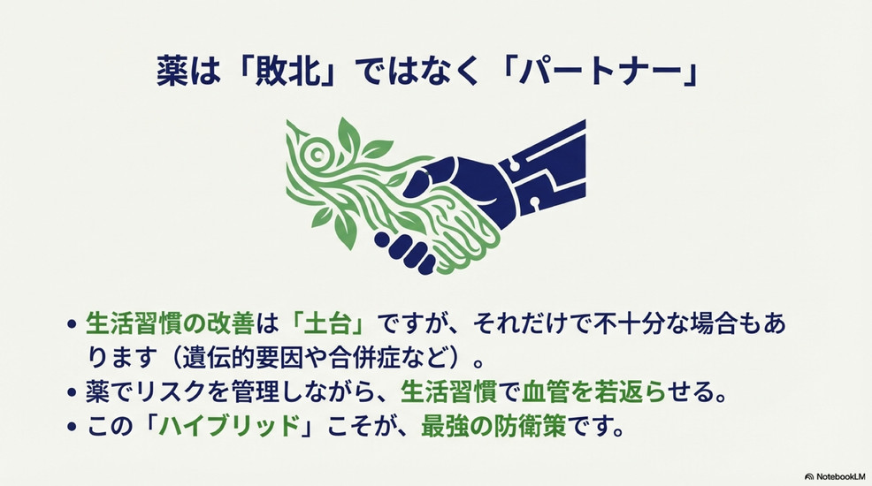高血圧と診断された際、「すぐに薬を飲まなければならない」と考える方もいらっしゃるかもしれません。しかし、薬物療法を開始する前に、あるいは薬物療法と並行して、生活習慣の改善が非常に重要であることをぜひ知っておいていただきたいです。生活習慣の改善は、高血圧の治療において、薬と同じくらい、いや、それ以上に大切な「土台」となる力を持っています。