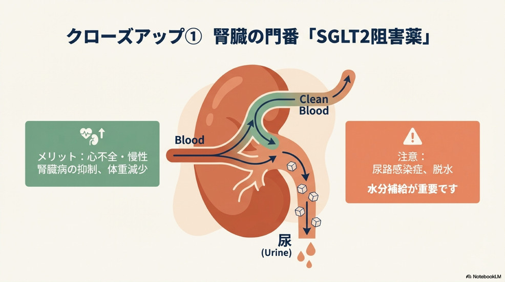 これらのリスクを避け、健やかな毎日を送るためには、適切な血糖コントロールが不可欠です。幸い、近年糖尿病治療薬は目覚ましい進歩を遂げ、血糖値を下げるだけでなく、心臓や腎臓を保護し、体重減少効果も期待できる新しいタイプのお薬が登場しています。