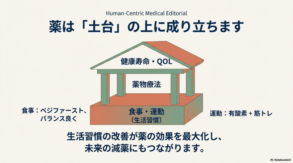 効果的で安全な糖尿病治療のためには、薬の作用機序を理解し、薬だけに頼らず食事や運動の工夫と合わせて治療を続けることが不可欠です。